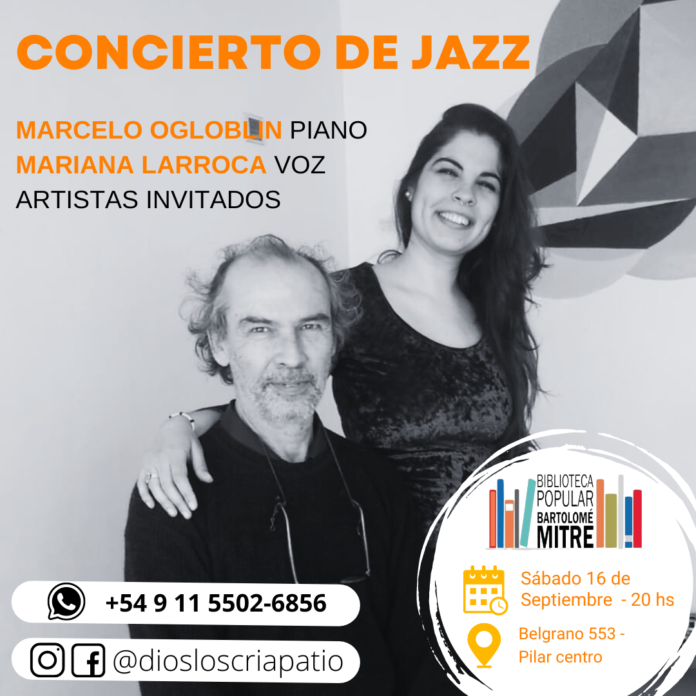 Continúa el sábado 16 de septiembre a las 20 hs el Ciclo de Música en la Biblioteca Bartolomé Mitre con un nuevo encuentro en el que se presentará un Concierto de Jazz con la actuación de Marcelo Ogloblin en piano y Mariana Larroca en voz junto a artistas invitados como Nicolás Larroca. El valor de la entrada para cada fecha es de $ 1000 y pueden reservarse al +54 9 11 5502-6856 o por las redes sociales de Dios los Cría Patio (@diosloscriapatio). La cita es en Belgrano 553, Pilar centro.