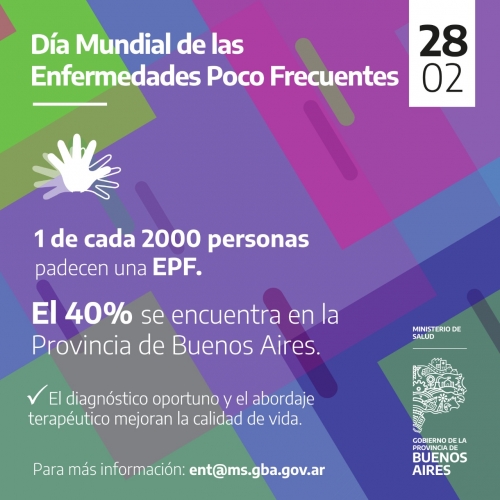 En el marco de la conmemoración del Día Mundial de las Enfermedades Poco Frecuentes (EPF), el Ministerio de Salud de la Provincia de Buenos Aires lanza el programa de Enfermedades Poco Frecuentes para ampliar el acceso a la atención integral de salud de las y los bonaerenses que sufren este tipo de enfermedades, con el fin de mejorar su calidad de vida y la de sus familias.