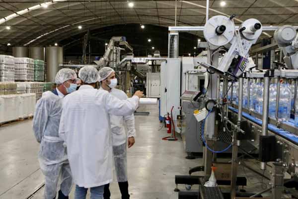 Los funcionarios recorrieron la nueva línea productiva de Cunnington, con maquinaria de punta que permite aumentar la producción de 13 mil botellas por hora a 23 mil, es decir que casi se duplica la capacidad.
