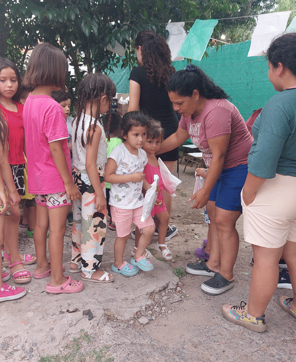 El jueves siguiente, el 28 de diciembre, los voluntarios de la Red de Costureras Solidarias y de la Asociación Solidaria 8 de Diciembre se acercaron al barrio Los Laureles de Presidente Derqui para llevar alegría al comedor «Todos somos uno».