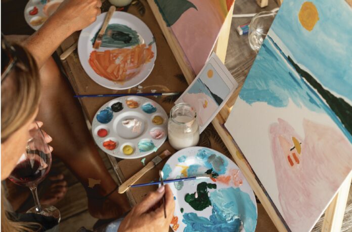 La experiencia comienza con una exquisita picada de quesos y fiambres regionales, maridada con vinos seleccionados de una reconocida bodega. Luego, de la mano de la artista visual Paula Calarame (@crear_experiencia), los asistentes se sumergirán en un taller de arte relajado y lúdico: sin presiones ni expectativas, solo con ganas de hacer algo distinto. No se necesita experiencia previa en pintura. Solo animarse a crear.