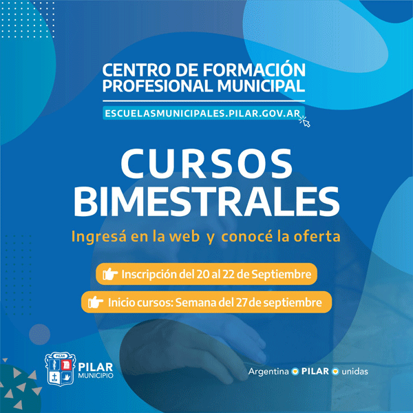 Los vecinos pueden inscribirse de manera virtual a los cursos en escuelasmunicipales.pilar.gov. ar hasta este viernes 24 de septiembre. En tanto, las clases se dictarán desde el lunes 27 de manera presencial en las sedes de Del Viso, Presidente Derqui, Fortabat, Manuel Alberti, Pilar Centro y Pilarica.